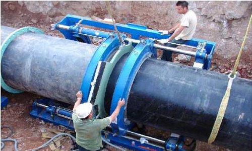 f) Ejecución de la soldadura. Este proceso debidamente ejecutado no tiene ningún inconveniente puesto que el pandeo producido es mínimo y por tanto la desalineación de los tubos a soldar es absorbida por la curvatura admitida del PE. Sin embargo el proceso debe ser realizado teniendo en cuenta que la máquina que soporta el tubo no debe perder capacidad de sustentación durante todo el proceso de soldadura ya que ello provocaría una presión positiva que influiría de forma negativa en los parámetros de soldadura.