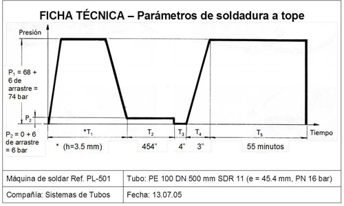 – Tubos PE 100 DN 500 x 45.4 SDR 11 PN 16 bar.