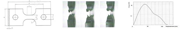 Se registran el ángulo de curvatura y la fuerza máxima. Las superficies de rotura con resultados similares son después examinadas para detectar zonas frágiles.