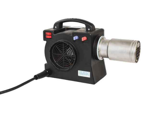 Industrial heater for continuous work with built-in air. It has a progressive regulation of the temperature up to 650º and the air flow, from 120 l/min to 950 l/min.