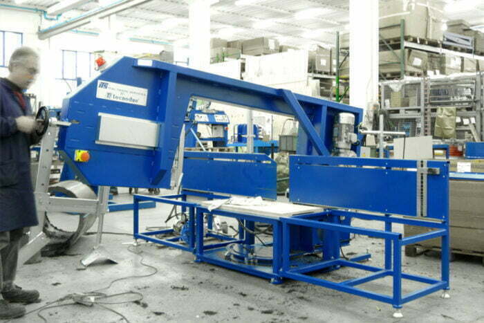 The cutting works thanks to a hydraulic piston and the speed of the cutting tape can be regulated
