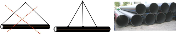 El suministro de tubos de PE se hace se realiza normalmente en barras de 12 a 15 m de longitud, por cuestiones de capacidad de transporte terrestre. Los tubos no deberán sujetarse por los extremos para manipularlos, como mínimo se deberá sujetar el 50% de su longitud en la zona central. No manipular tubos utilizando cables o cadenas metálicas.