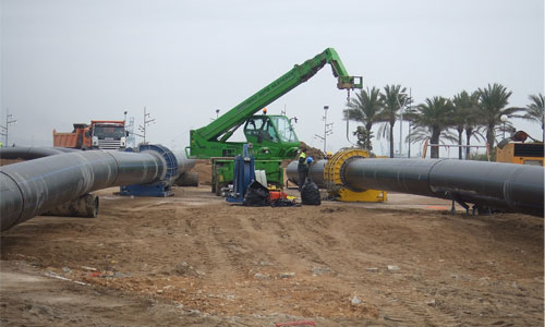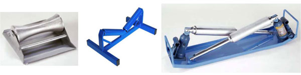 c) Aproximar el tubo a la altura que tiene en la máquina, para facilitar la alineación. Es aconsejable la utilización de caballetes con rodillos en lugar de trozos de tubos, maderas, ladrillos, etc. que a veces se utilizan en las obras, por ser menos seguros.