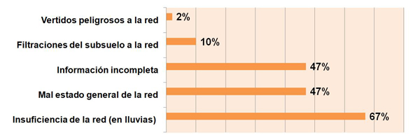 Los problemas generales que las redes de Saneamiento tienen actualmente, de acuerdo con esta encuesta son los indicados a continuación: