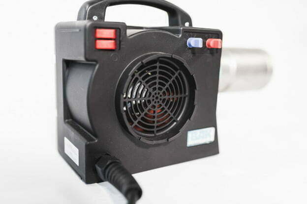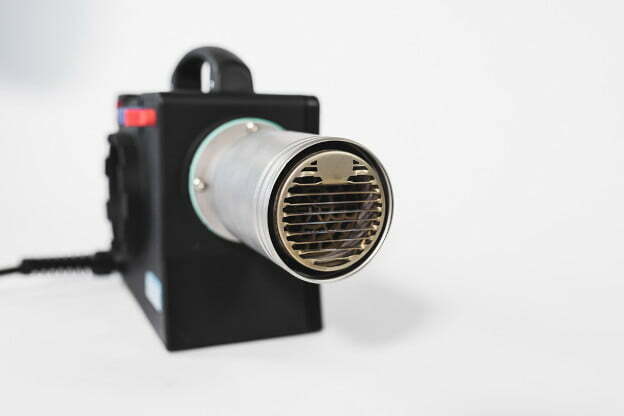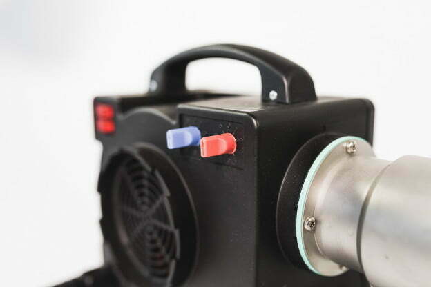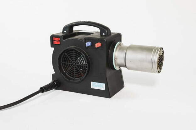 Calentador industrial para el trabajo continuo con aire incorporado. Tiene una regulación progresiva de la temperatura hasta 650º y del caudal de aire, desde 120 l/mín hasta 950 l/mín.