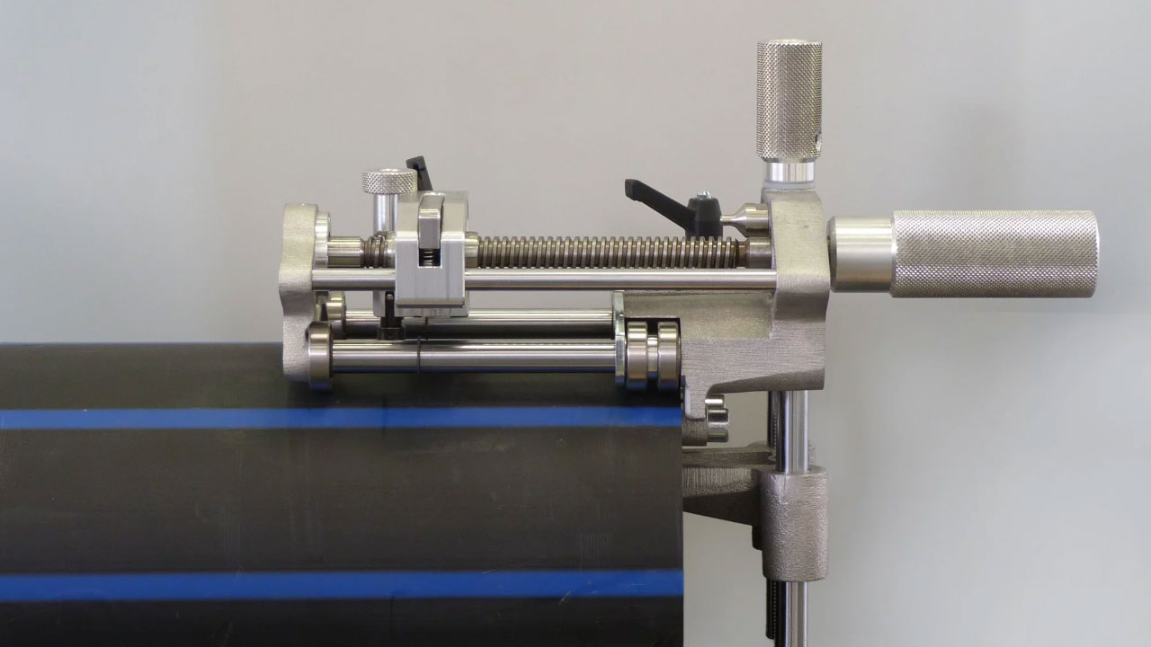 Rascador de tubos semiautomático, indispensable para preparar el tubo antes de soldarlo con un accesorio de electrofusión.