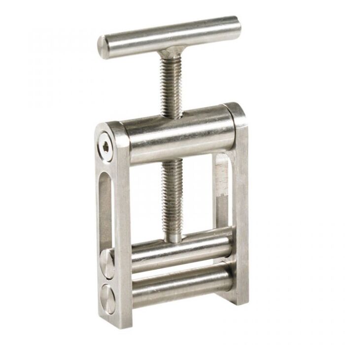 La herramienta de compresión de tamaño de bolsillo es una caja de herramientas esencial para plomeros diseñada para tamaños de tubería pequeños de hasta 20-42 mm. Con un peso de solo 0,5 kg, es compacto, liviano y cuenta con una barra de compresión inferior retenida con un clip en C sin el uso de placas de tope.