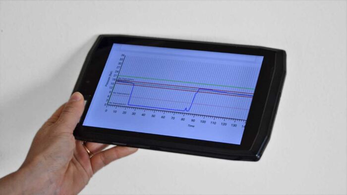 La aplicación es sencilla e intuitiva, el operador sólo necesita introducir los datos del tubo a soldar, elegir el estándar de soldadura y realizar la soldadura con los parámetros calculados automáticamente por la aplicación. En la tablet puede ver en tiempo real el gráfico de la soldadura en cada etapa.