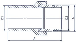| Código | D1 (mm) | D2 (mm) | A (mm) | C (mm) | Material | Unidades por caja |