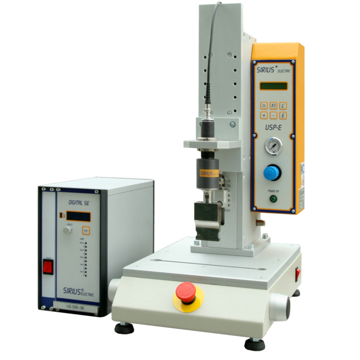 El cabezal portatransductor se mueve neumáticamente sobre guías prismáticas de alta precisión. La soldadora está equipada con un interruptor de límite mecánico para controlar la posición de soldadura. Los generadores utilizados están disponibles con una frecuencia de 36 kHz y una potencia de 500-1000 vatios. Estos generadores son de última generación y totalmente digitales. Están equipados con una pantalla retroiluminada y vienen encerrados en un elegante armario metálico. Una de las características más importantes de esta soldadora es el sistema de control de ciclo gestionado por un MICROPROCESADOR