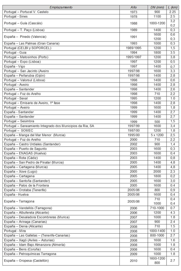 → Relación no exhaustiva de emisarios submarinos instalados en Iberia