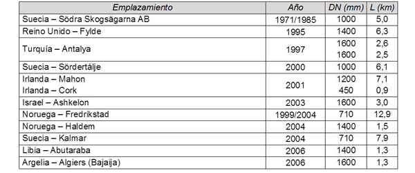 2) Pequeña relación de emisarios submarinos instalados en otros países