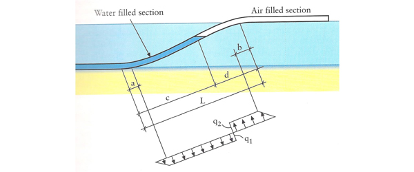 El peso de la agua hace que la tubería empiece a flexionarse por la extremidad en proceso de hundimiento. El tramo de tubería presenta una forma de “S” – método también llamado de fondeo en forma de “S”.
