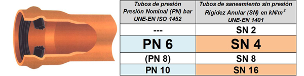 No se deben instalar tubos y accesorios de SN 2 en áreas donde se produzcan descargas de agua caliente. La norma UNE-EN 1401 y el UNE-EN 13476 definen dos series o áreas de aplicación: