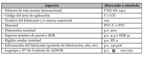 El marcado es importante porque nos permite tener la trazabilidad del tubo, quien lo fabricó, cómo, dónde, que día, material utilizado, responsable de la fabricación, etc., es decir reconstruir su historial por si surge algún problema. Por ejemplo todos los tubos para saneamiento fabricados de acuerdo con la norma UNE-EN 1401 han de ir marcados con los siguientes datos mínimos: