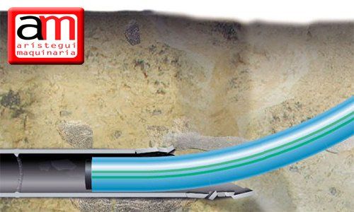 La nueva tubería, va enganchada a la cabeza cortante, de modo que a la vez que rompe y destruye la tubería antigua, se instala la nueva.