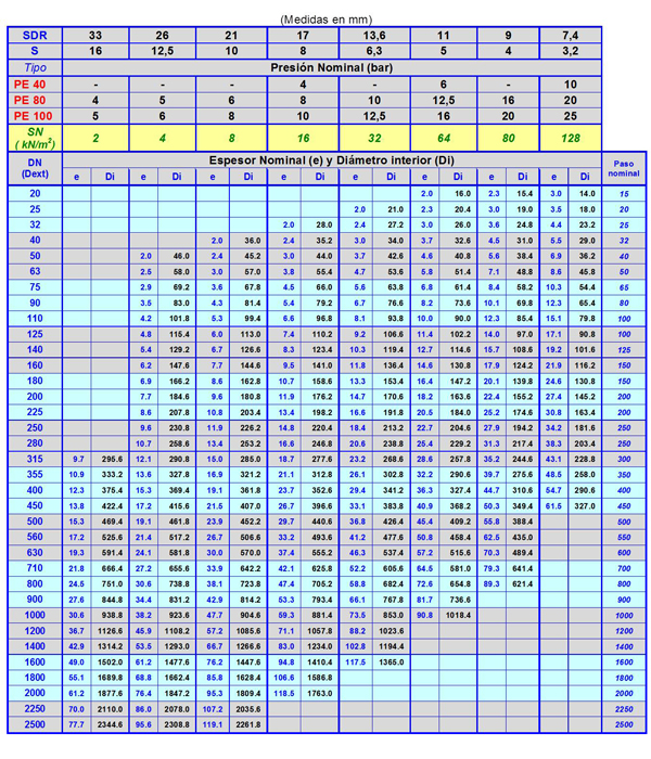 >>> La última columna de la derecha indica el Paso Nominal equivalente para cada diámetro de tubo. El Paso Nominal es importante para definir las bridas que corresponden a cada tubo. Si quieres puedes dejar un comentario.