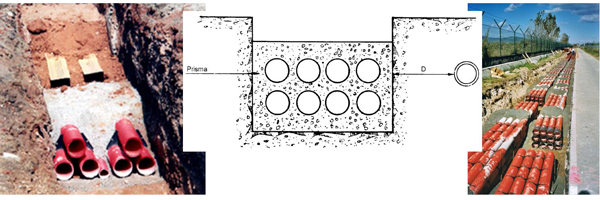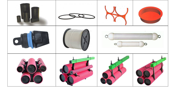 Existen accesorios y equipos para canalizaciones de redes de servicios. Ver por ejemplo la página de LAYEGAS. Aplicaciones más recientes en líneas eléctricas, son los soportes para soterramiento de líneas de Alta Tensión y la incorporación en las líneas de MT y AT de cuatritubo de telecomunicaciones (4 monotubos d.40 en forma cuadrada, 2+2) que desde hace algunos años han añadido compañías como REE e Iberdrola, y que LAYEGAS ha desarrollado conjuntamente con la ingeniería de ambas compañías.