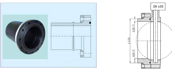 Como se puede observar, hay un hueco entre el diámetro interior de la brida y el diámetro exterior del tubo, que es lo que provoca que la superficie de contacto entre la brida y el portabridas sea bastante pequeña. Bajo presión la superficie de estanquidad se distorsiona. En caso de presión muy alta y diámetros más grandes, la unión puede resultar ineficaz y originar fugas. Lo que supone un grave problema, ya que la reparación de una fuga en tubos de PE de gran diámetro resulta muy costosa.